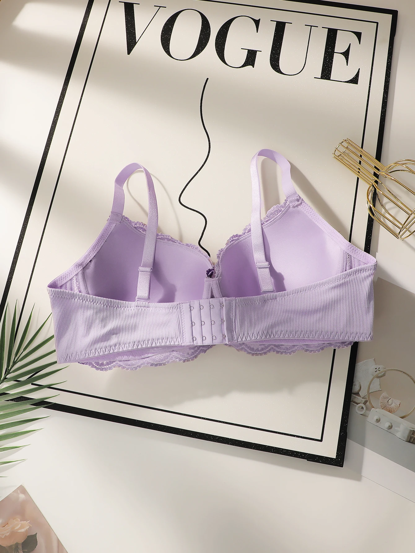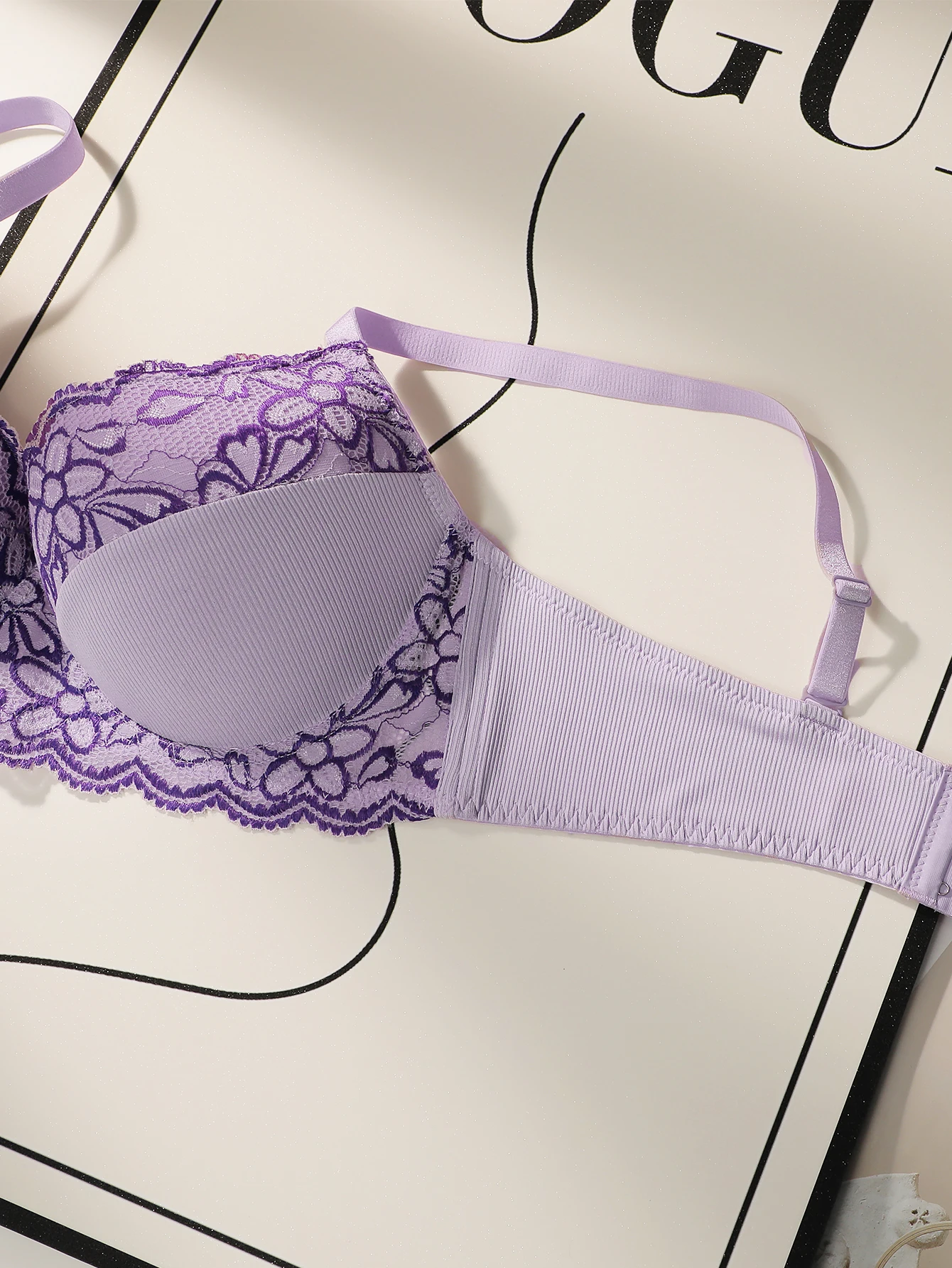Women’s Oversized Underwear With Half Cup Gathered Anti Sagging Flower Embroidery Design Suitable For Plump Women 90D-110D B2510